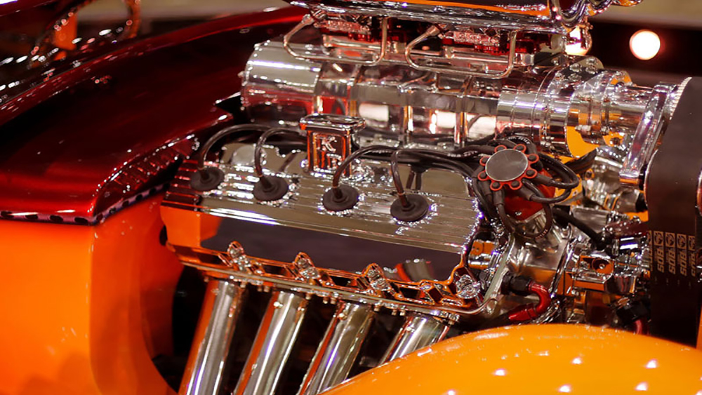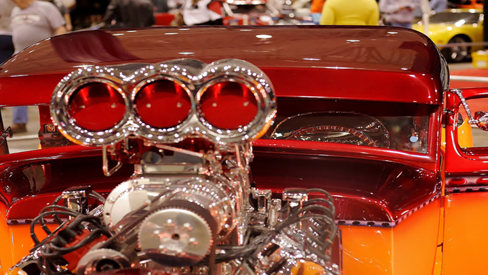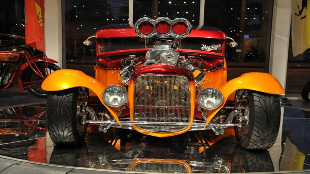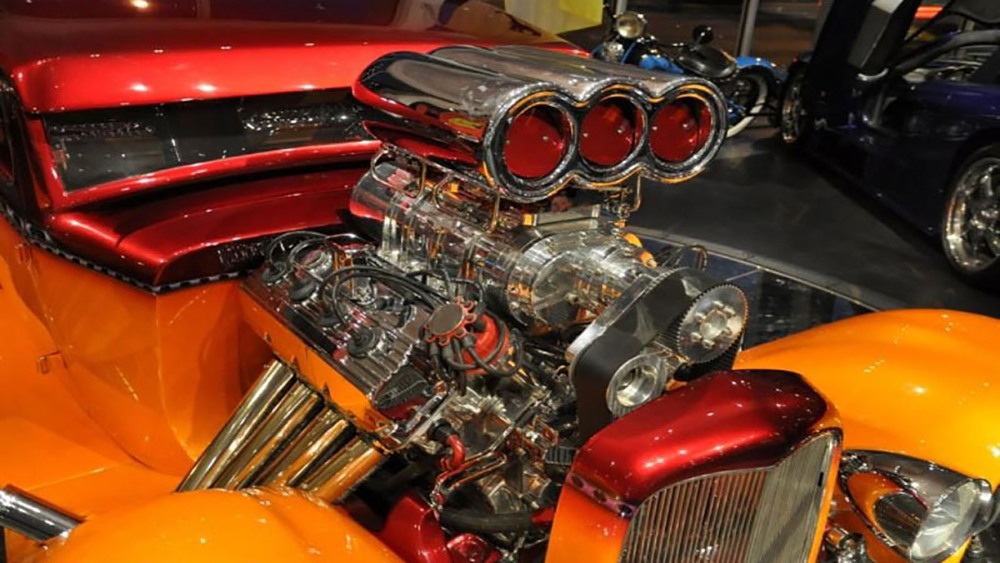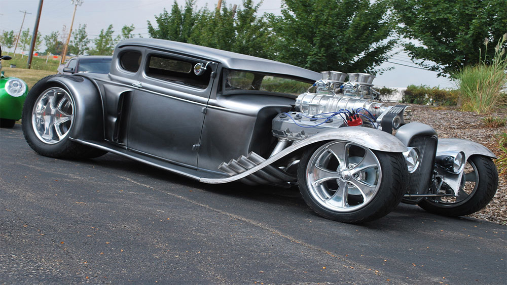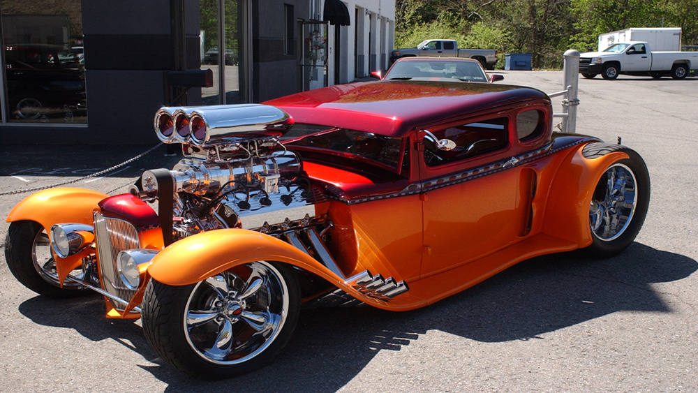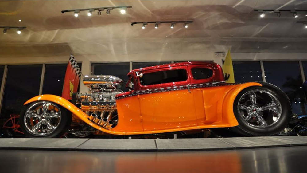 With its two-tone red and orange paint job, custom cut rear fenders, 4" chopped body, and channeled and sectioned 8" wider, Ratical Rod is truly one-of-a-kind!
