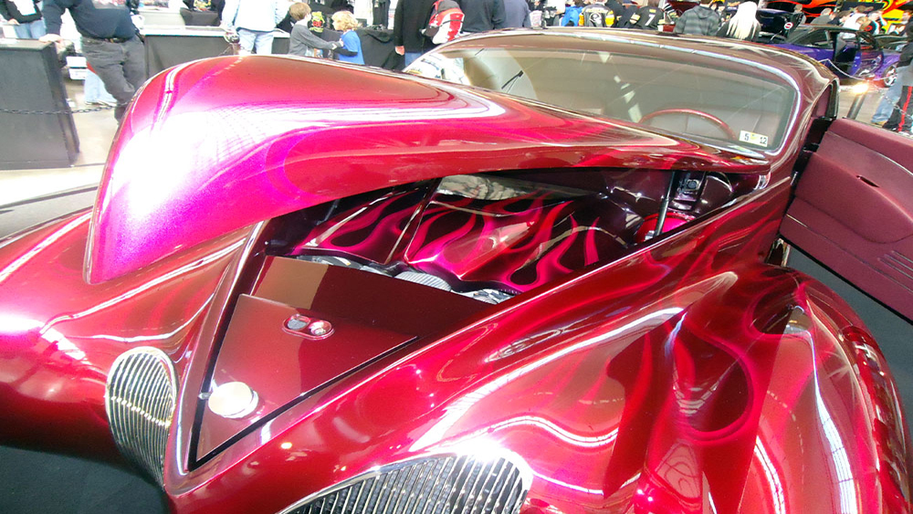 Let’s face it, Zephyrs are cool. What makes this car even cooler is the House of Kolor Wild Cherry paint with ghost flames. The different underbases really make the Wild Cherry pop.