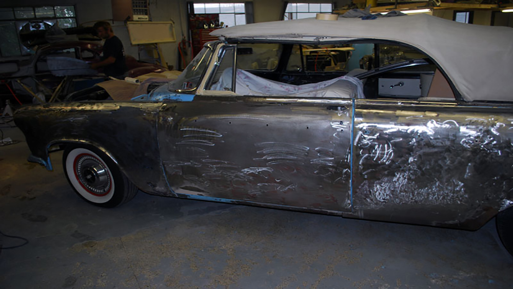 We restored the body and painted the Dodge Coronet pitch black turning this into a gorgeous classic car.