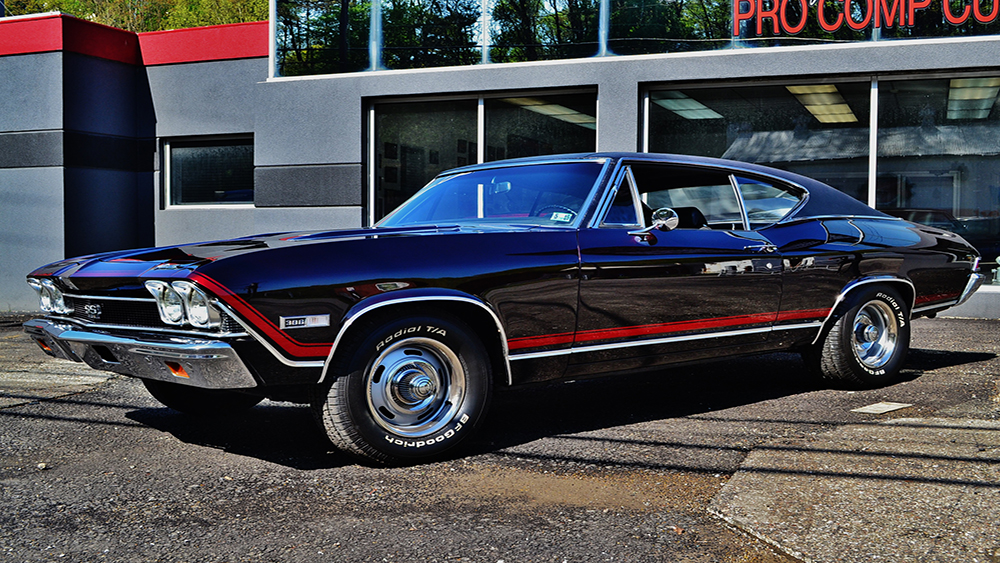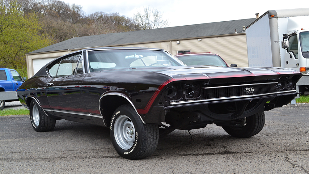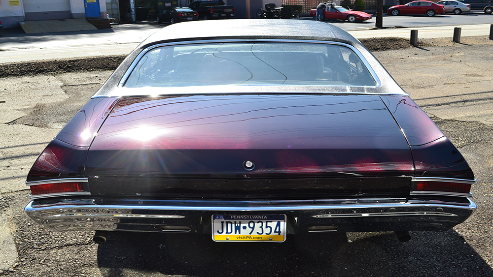 The owner of this car was torn on the color – until he saw the 442 we painted and he knew black brandywine was the way to go. Bruce added a pure brandywine stripe to enhance the body color.