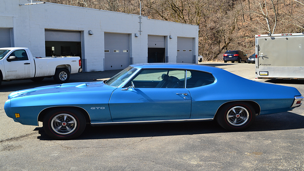 It is fun to tinker with an older car, but not everyone feels the same about doing bodywork and paint. The GTO’s owner is very hands-on and has his baby spinning like a top. For the final touch — a beautiful paint job — he asked us to do our magic. In person the color is absolutely stunning. The color is Lucerne Blue and the depth of shades within the paint is incredible.