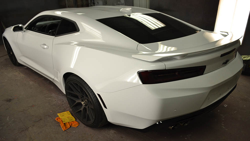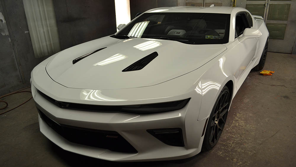 With only 900 miles on the car, the customer decided to make his car even more spectacular than it already was. He requested a custom fade from white to gunmetal. Bruce used several shades of silvers to achieve the subtle gradations of the fade. In certain light you would think the car is chrome.